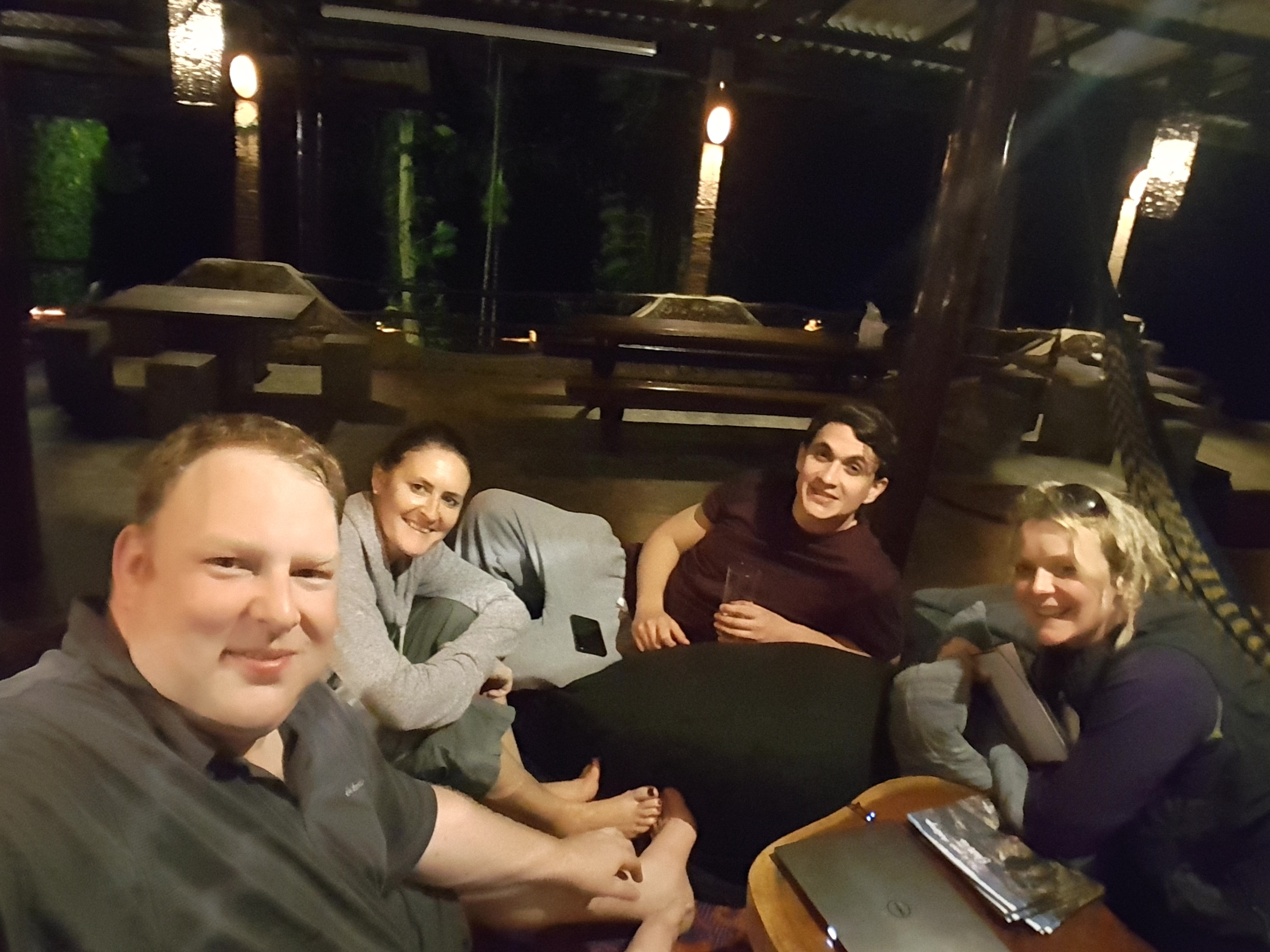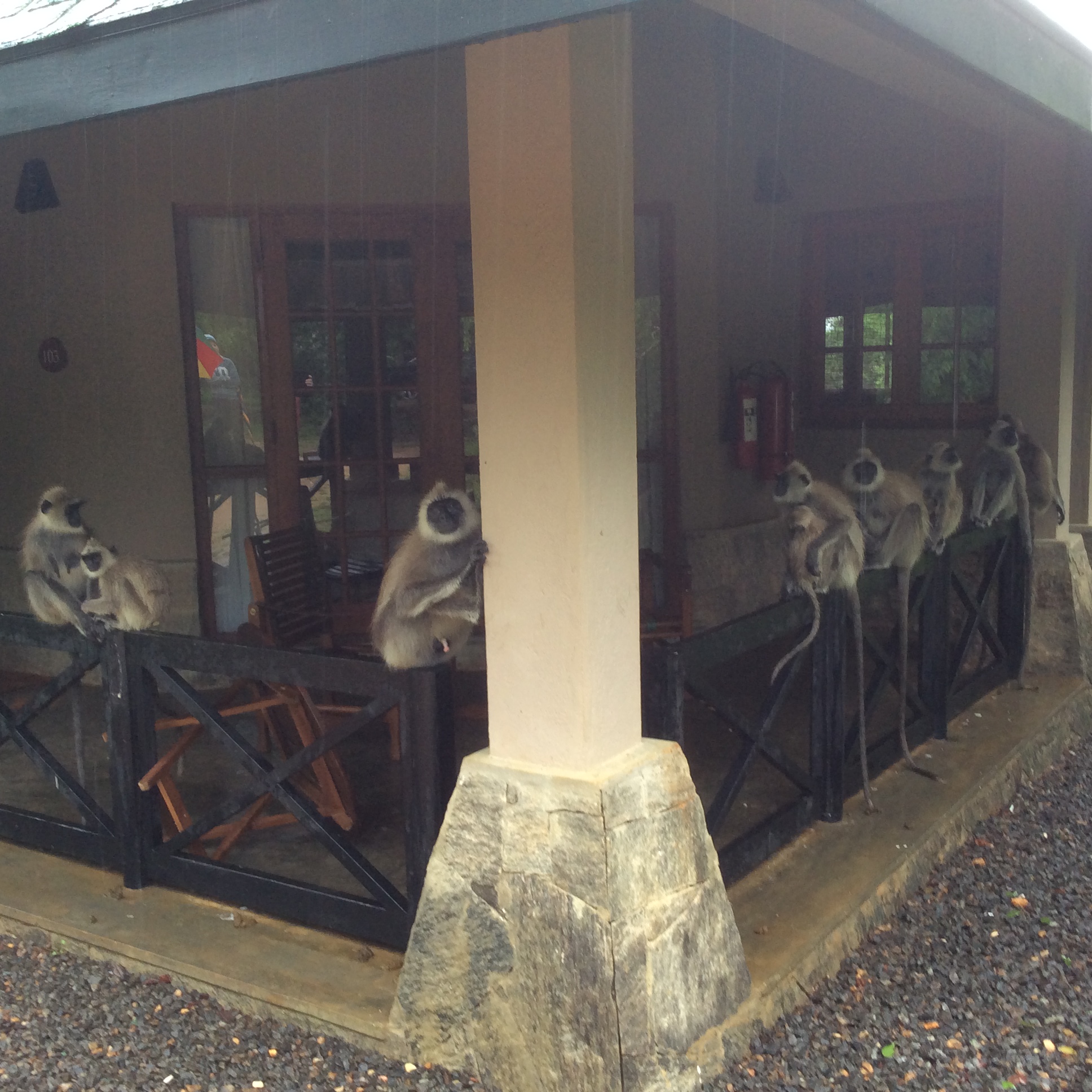 You can sunbath by the pool, watching the crocodiles 20 yards away in the lake. Or see the wild boar with their babies mooching around your villa and the monkeys jumping on the rooftops. One day it was raining we came back to our villa and found we already had guests waiting for us (see below).