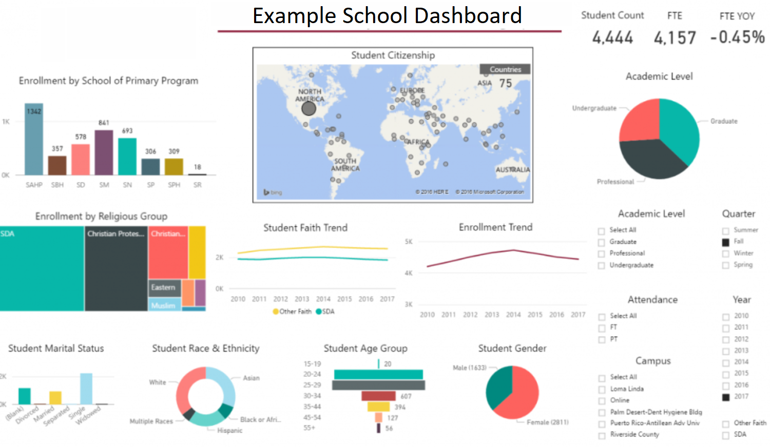 Usually your MIS only holds part of the story, it may hold your student data but not your financial data or your marketing data, Power BI lets you bring together many live feeds of data into one place. Also many MIS systems are setup in isolation, making it challenging to gather aggregated data in a group across a number of schools.
