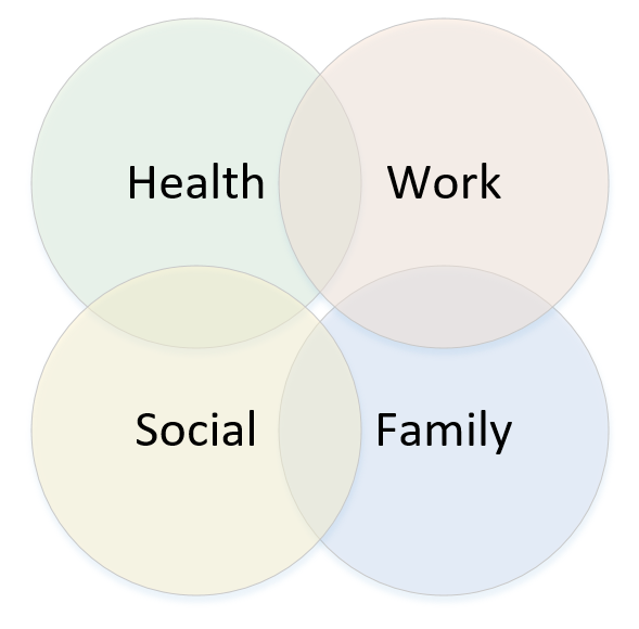 Of all the models that represent life balance, I like this one with 4 circles, all these items require your time in equal measure for the best balance.